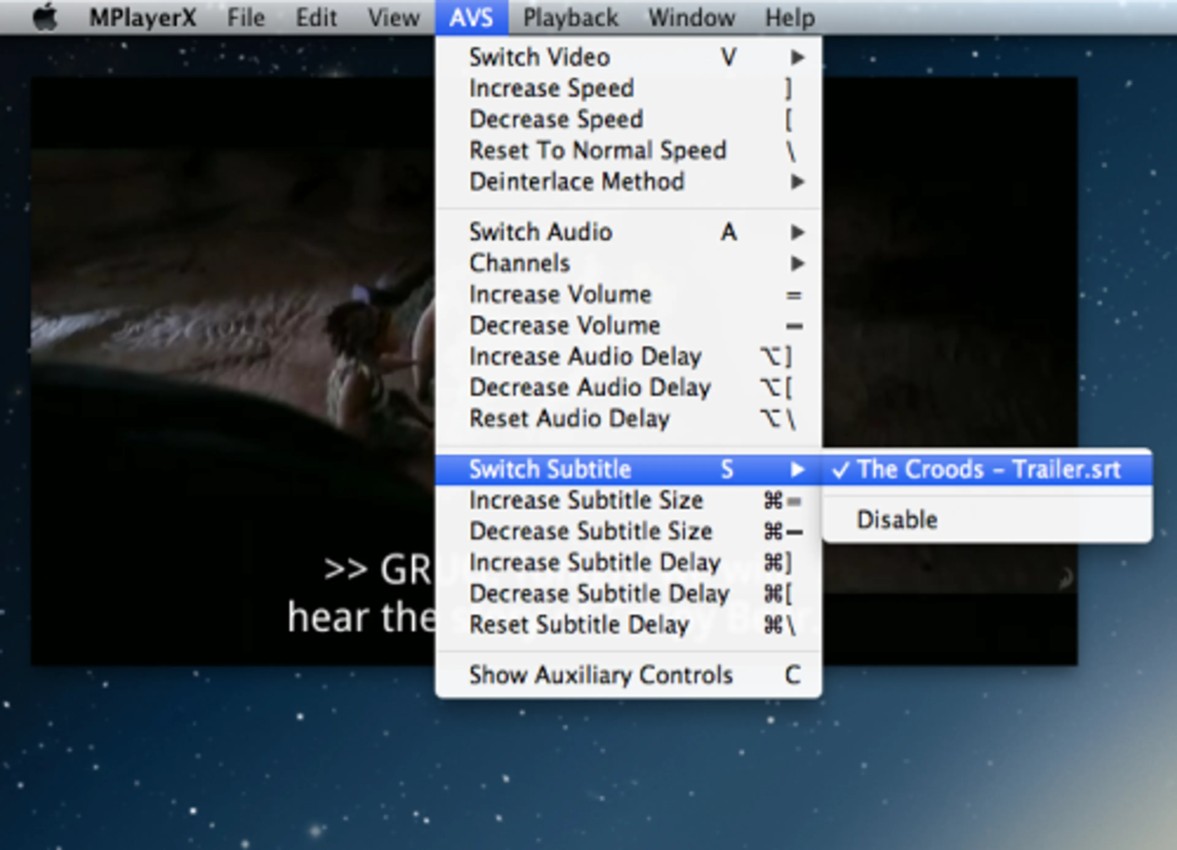 Nella barra della menu, clicca AVS > Cambia sottotitoli per visualizzare, selezionare o aggiungere i sottotitoli.
