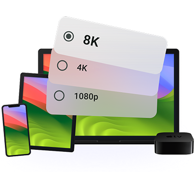 Téléchargez des vidéos en résolution HD 720p, HD 1080p, 4K et 8K. Profitez-en en haute définition sur votre TV HD, votre iPad, votre iPhone, votre Samsung et d'autres dispositifs.