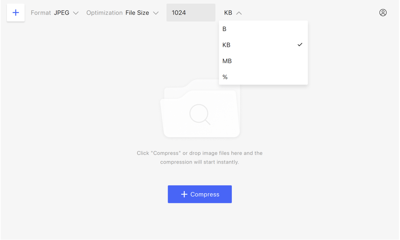 - Select the Optimization type. You can choose Auto, Lossless (unavailable for JPEG compression), and File Size. The latter setting implies that you can compress an image by a certain percentage or a specific amount of MB, KB, or even bytes.