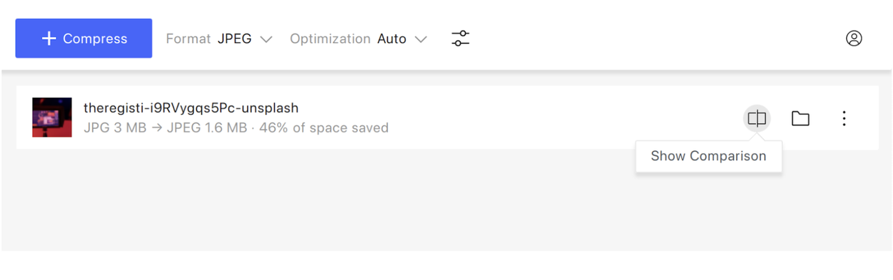 - Press Show Comparison to make sure no quality is lost.