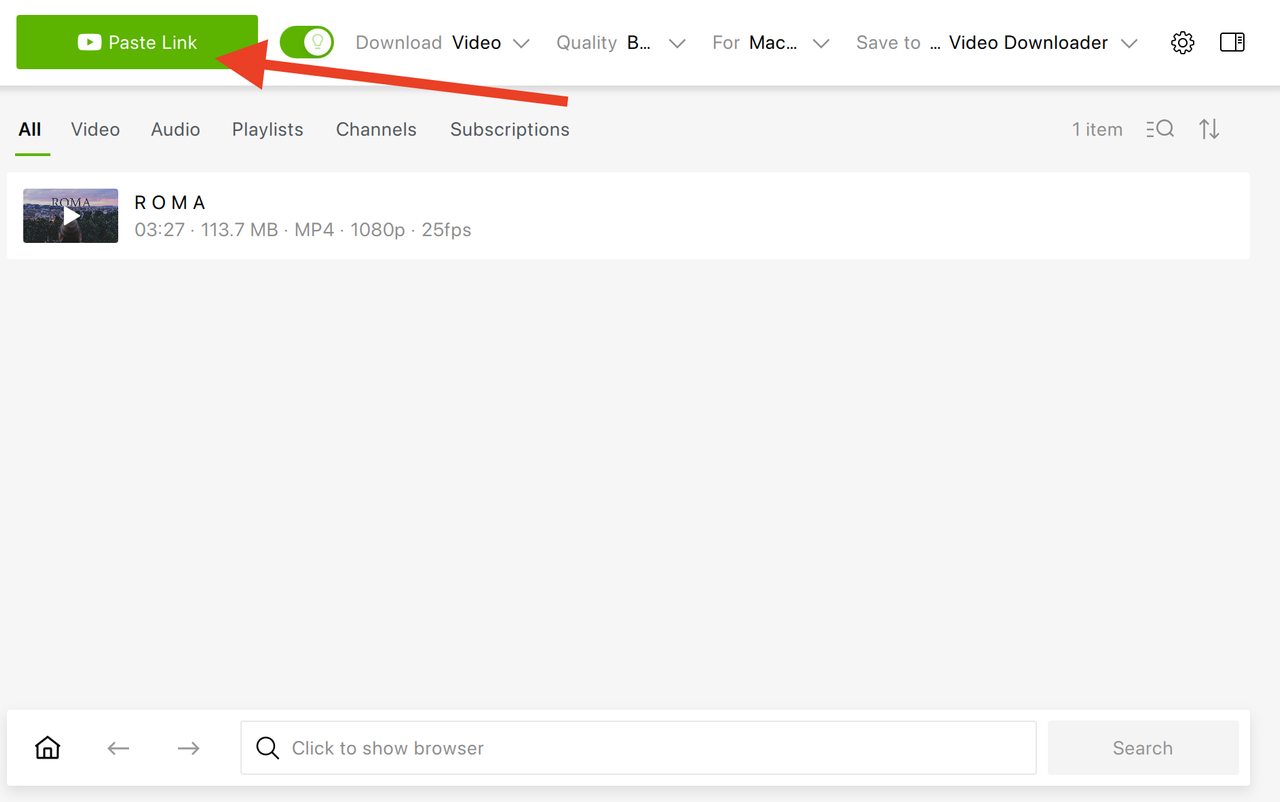 - Click “Paste Link” and allow the video to parse completely.
