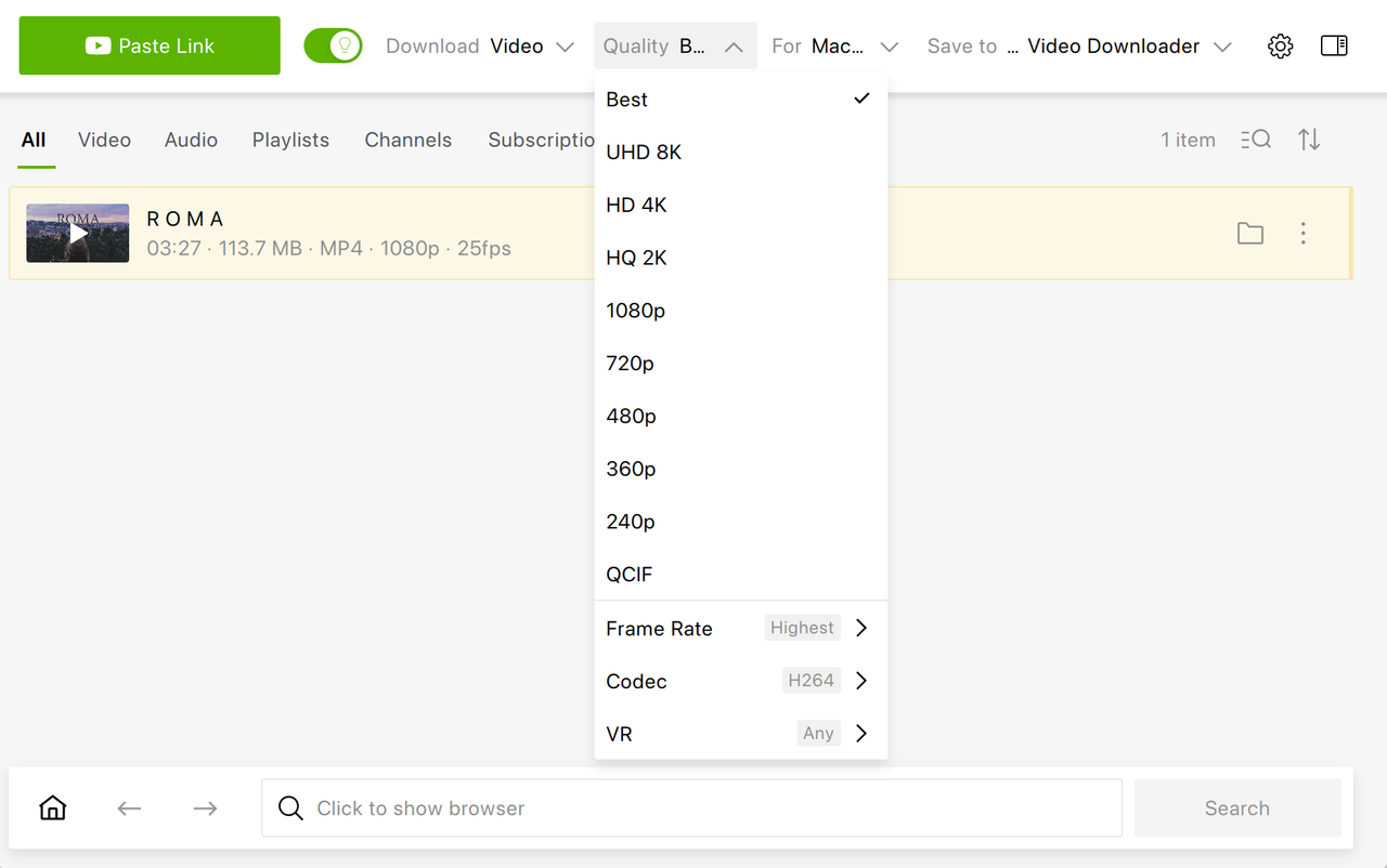 - Select the required download settings in the Smart Mode: format, quality, and output folder.