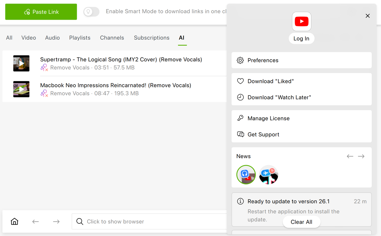 The latest update of 4K Video Downloader Plus (version 26.1.0) is now available to install! This release focuses on making everyday tasks simpler, whether you're downloading videos, working with brand-new AI tools, or managing subscriptions, while also improving stability across the app.
