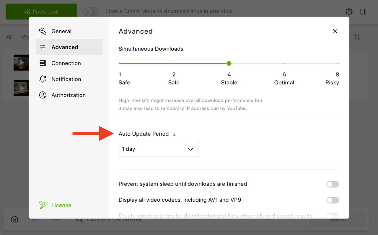 You now decide how often the app checks subscriptions for new content. This setting is available in Preferences → Advanced → Auto Update Period and helps reduce the risk of YouTube rate limiting your account.