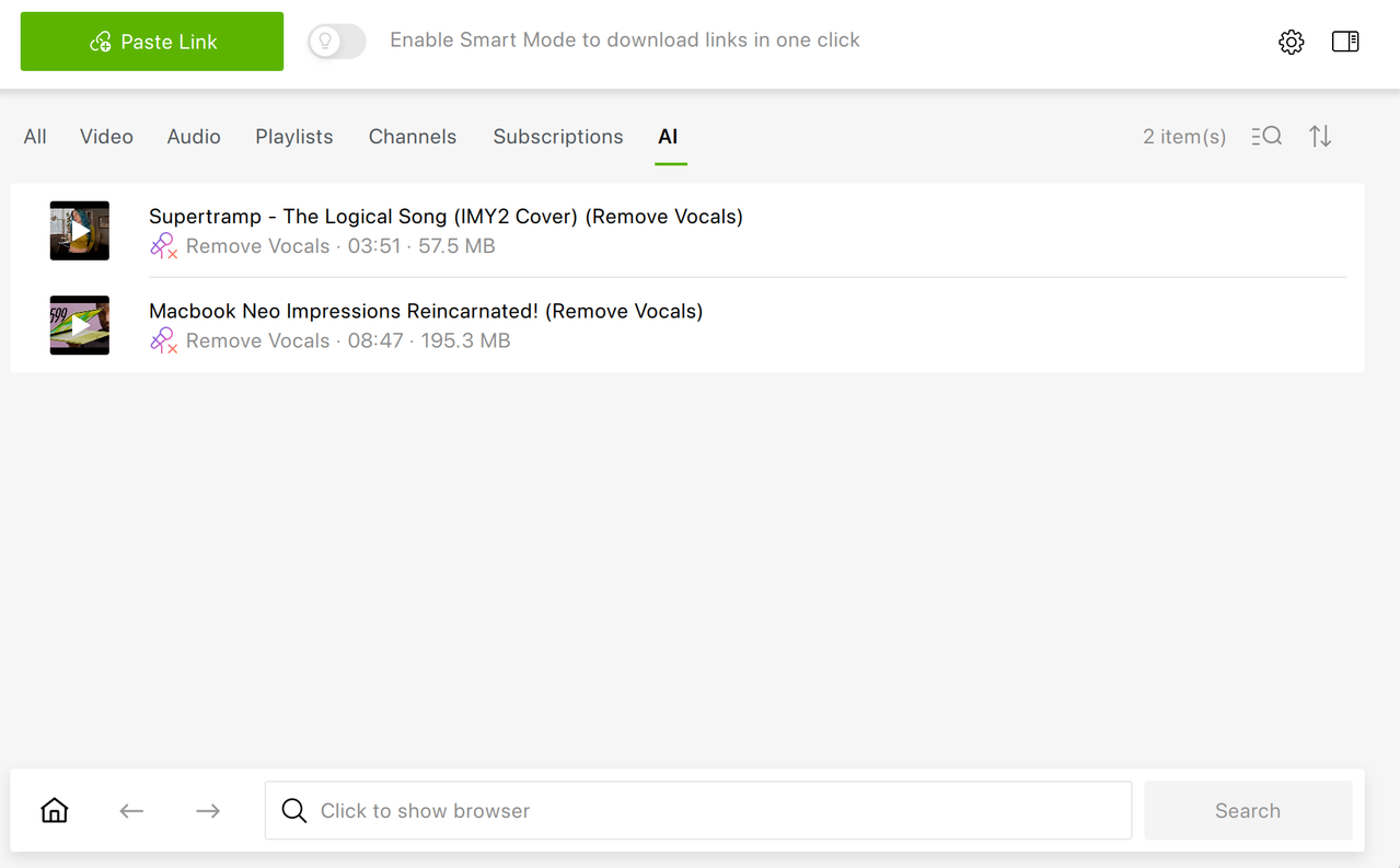 - Remove Vocals — removes vocals while keeping the instrumental (great for karaoke or remixes)