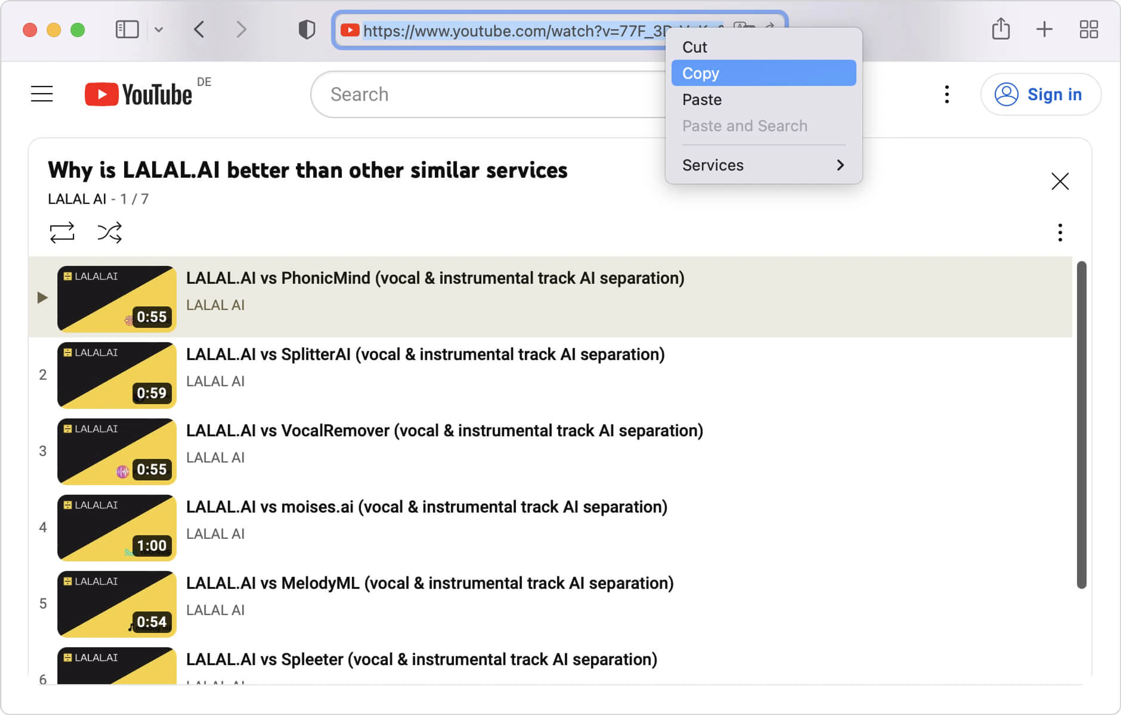 2. Kopieren Sie den Videolink für die Playlist aus Ihrem Browser.