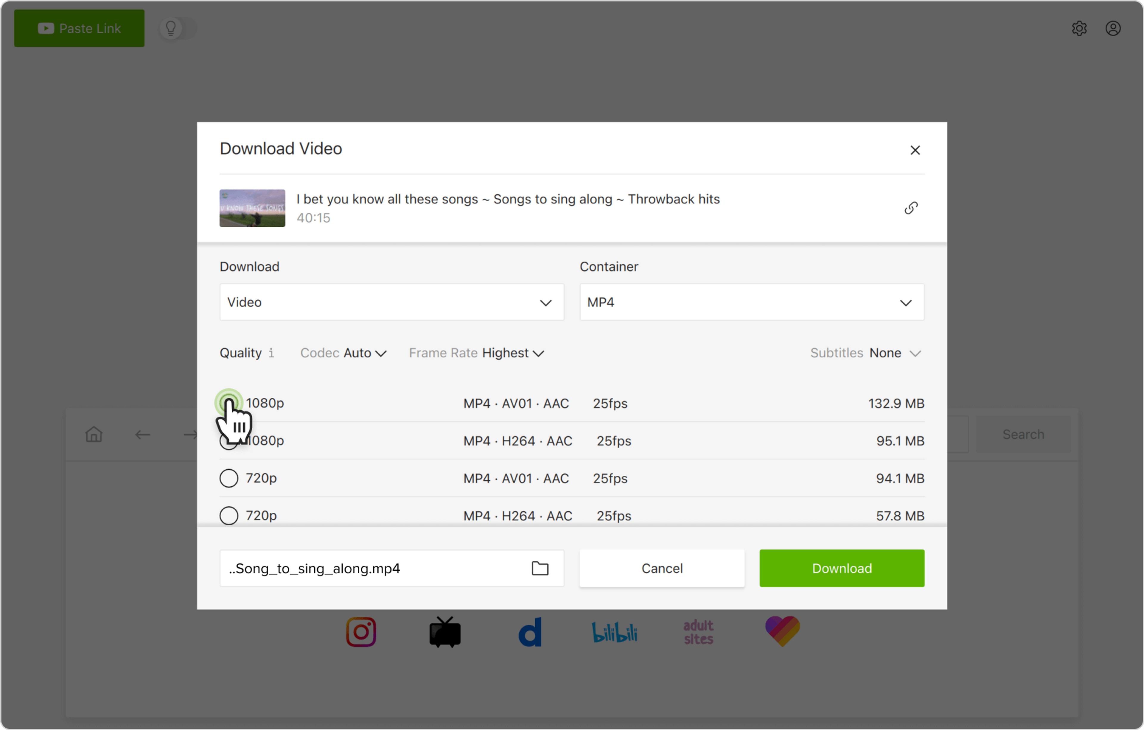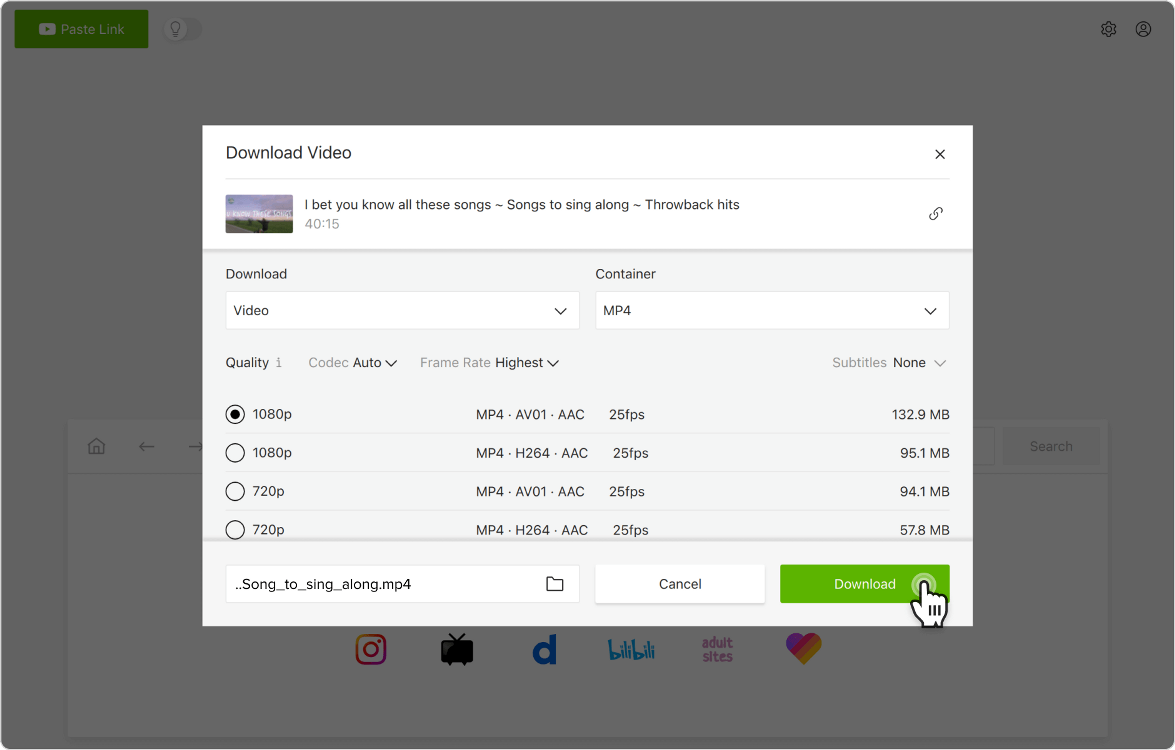 Alternativ können Sie über den In-App-Browser Karaoke YouTube-Videos finden und herunterladen. Auf diese Weise können Sie YouTube durchsuchen, ohne die Anwendung zu verlassen, und Inhalte direkt herunterladen.