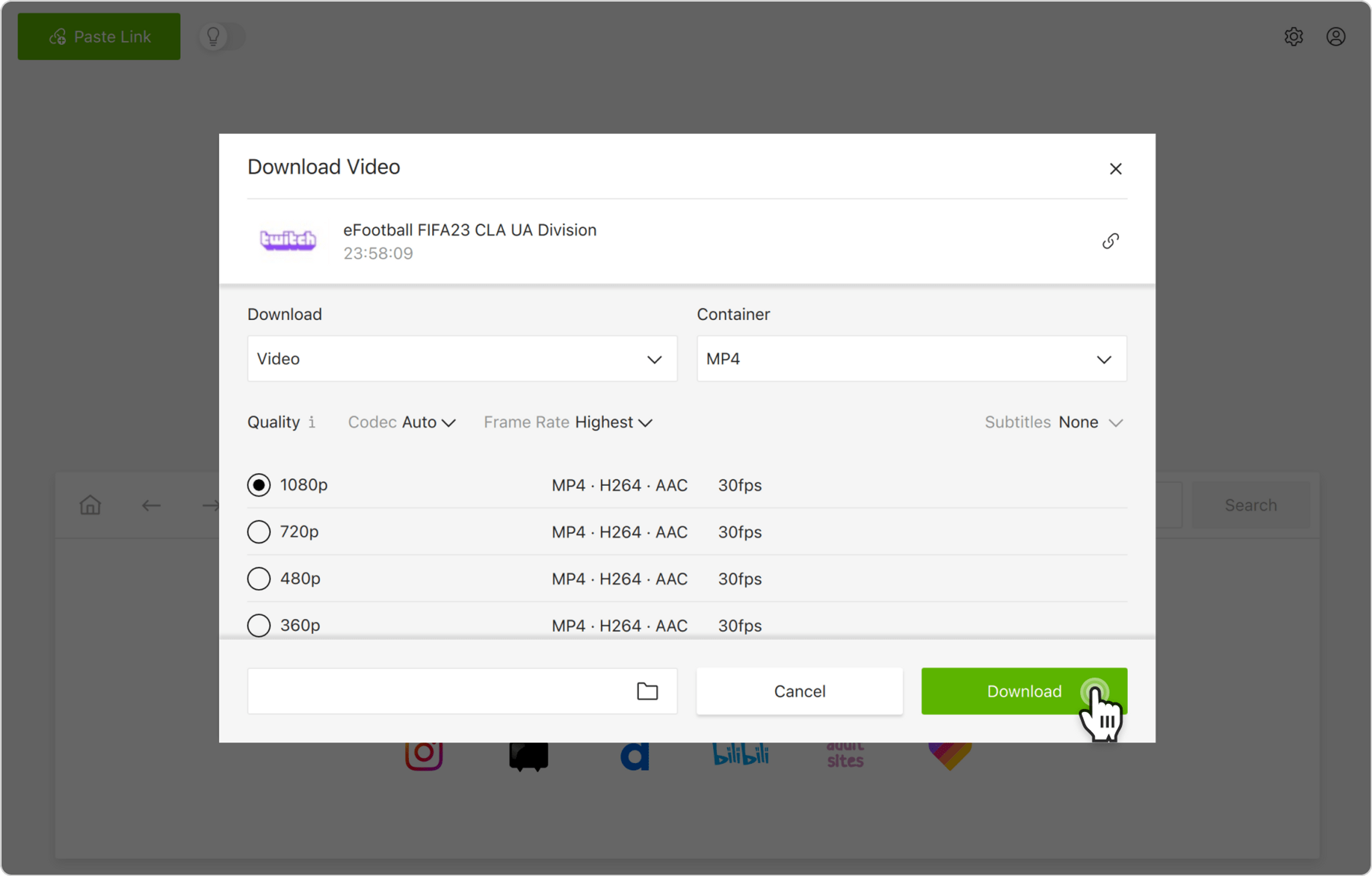 Twitch ist die führende Live-Streaming-Plattform in der Gaming-Welt. Zuschauer können Live-Streams kostenlos ansehen, Kanälen folgen und in Chatrooms mit anderen interagieren. Das einzige Feature, das Twitch fehlt, ist die Möglichkeit, Streams herunterzuladen. 4K Video Downloader Plus ist hier, um die Lücke zu füllen und Ihnen beim Herunterladen von Twitch-Streams und -Videos zu helfen. Befolgen Sie einfach die folgenden Schritte.