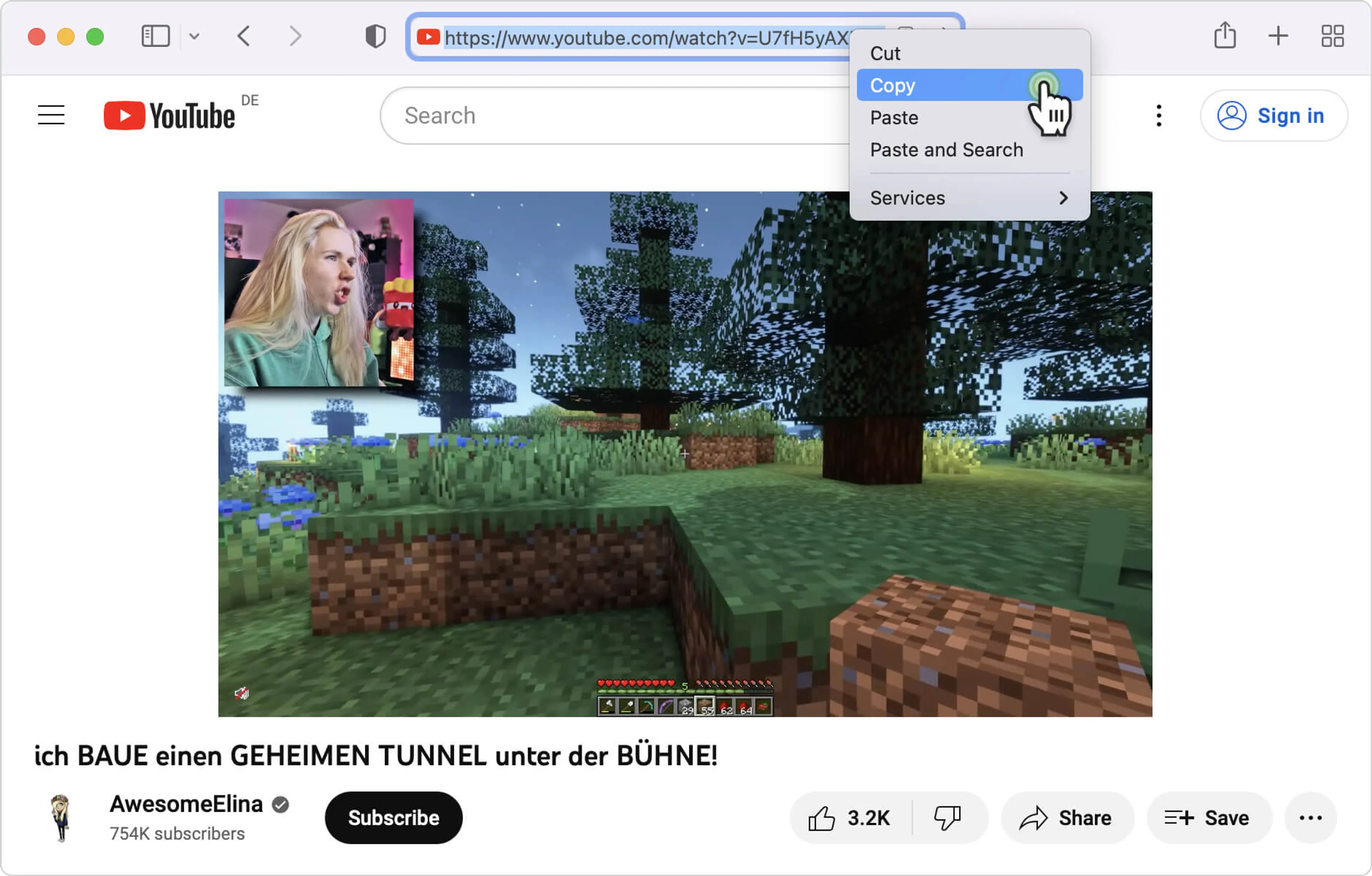 5. Copia el enlace al video de YouTube que quieres descargar con un doblaje.