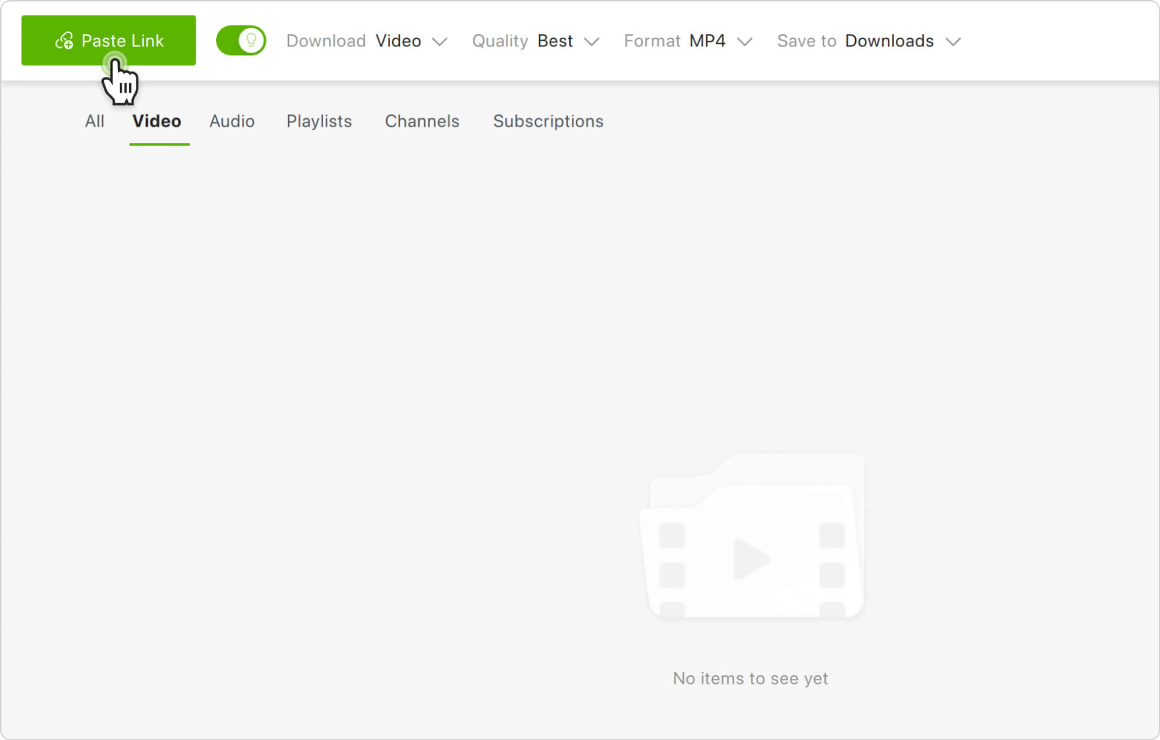 3. Pulsa el botón Pegar enlace en el descargador.