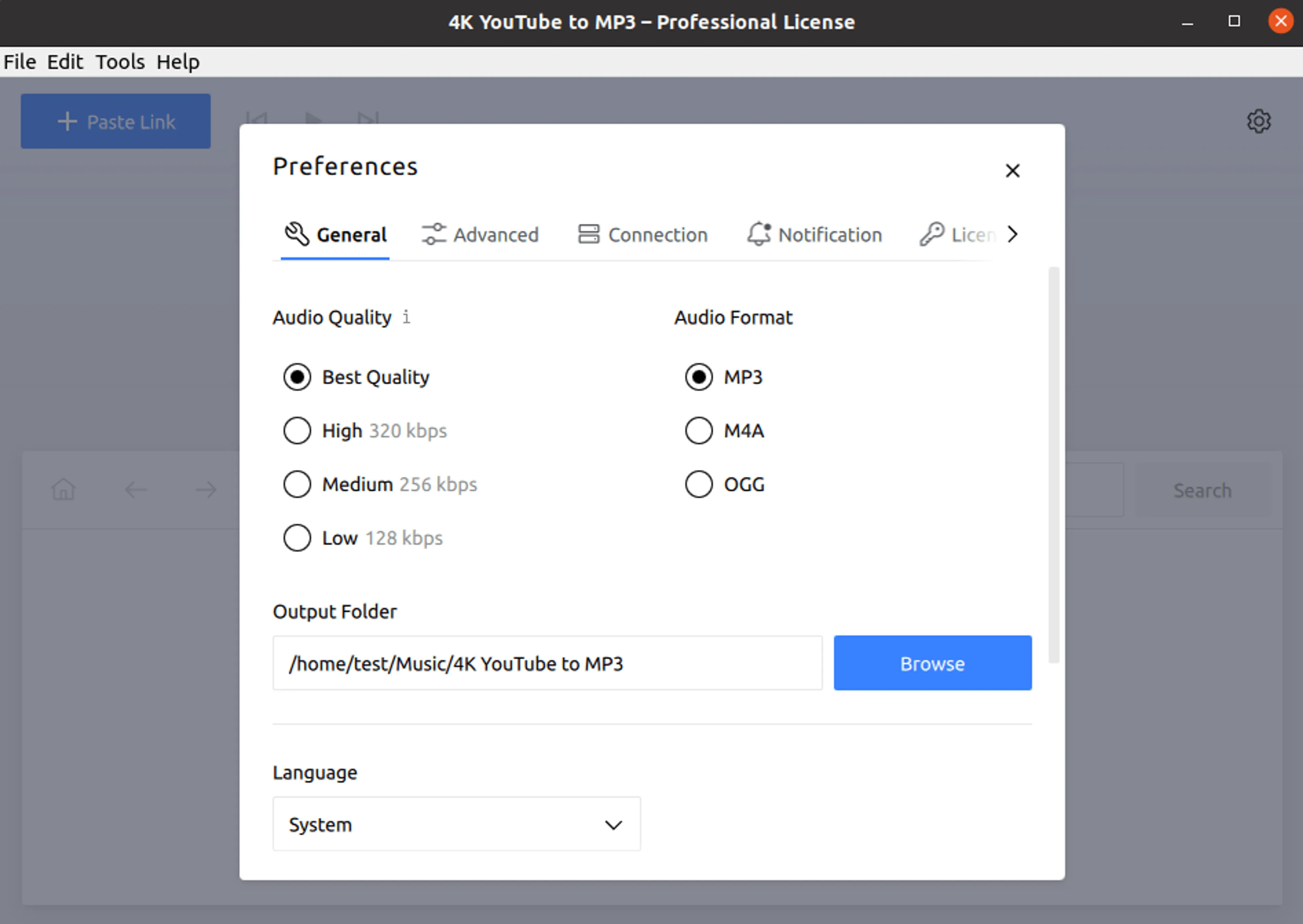 2. Abre 4K YouTube to MP3 y ve a "Preferencias". Si quieres escuchar música en tu iPhone, selecciona un formato M4A y elige la calidad. Si quieres escuchar música en tu dispositivo Android, selecciona un formato MP3 u OGG y la calidad Alta.