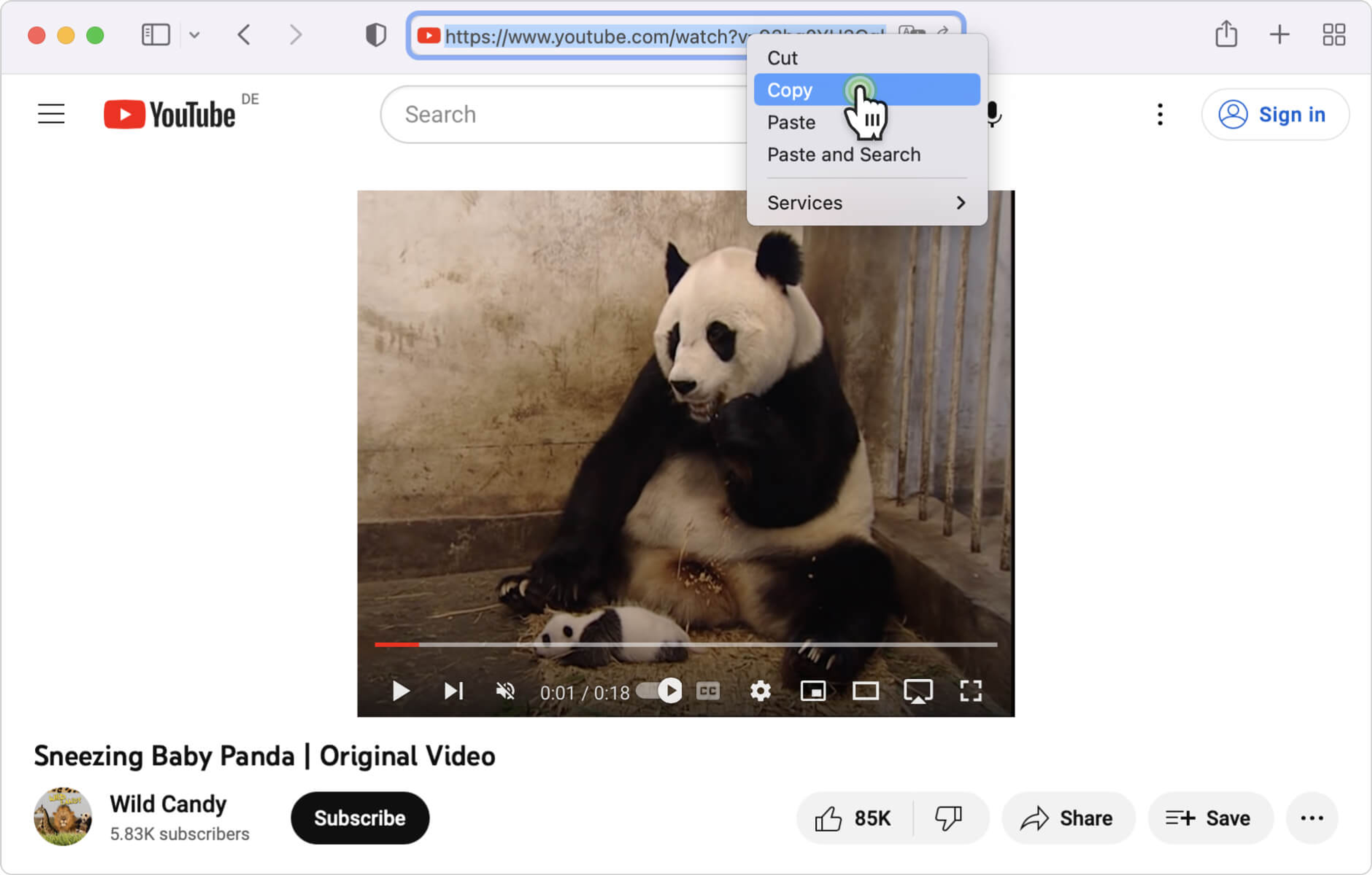 2. Copiez le lien vers la vidéo YouTube que vous souhaitez télécharger.