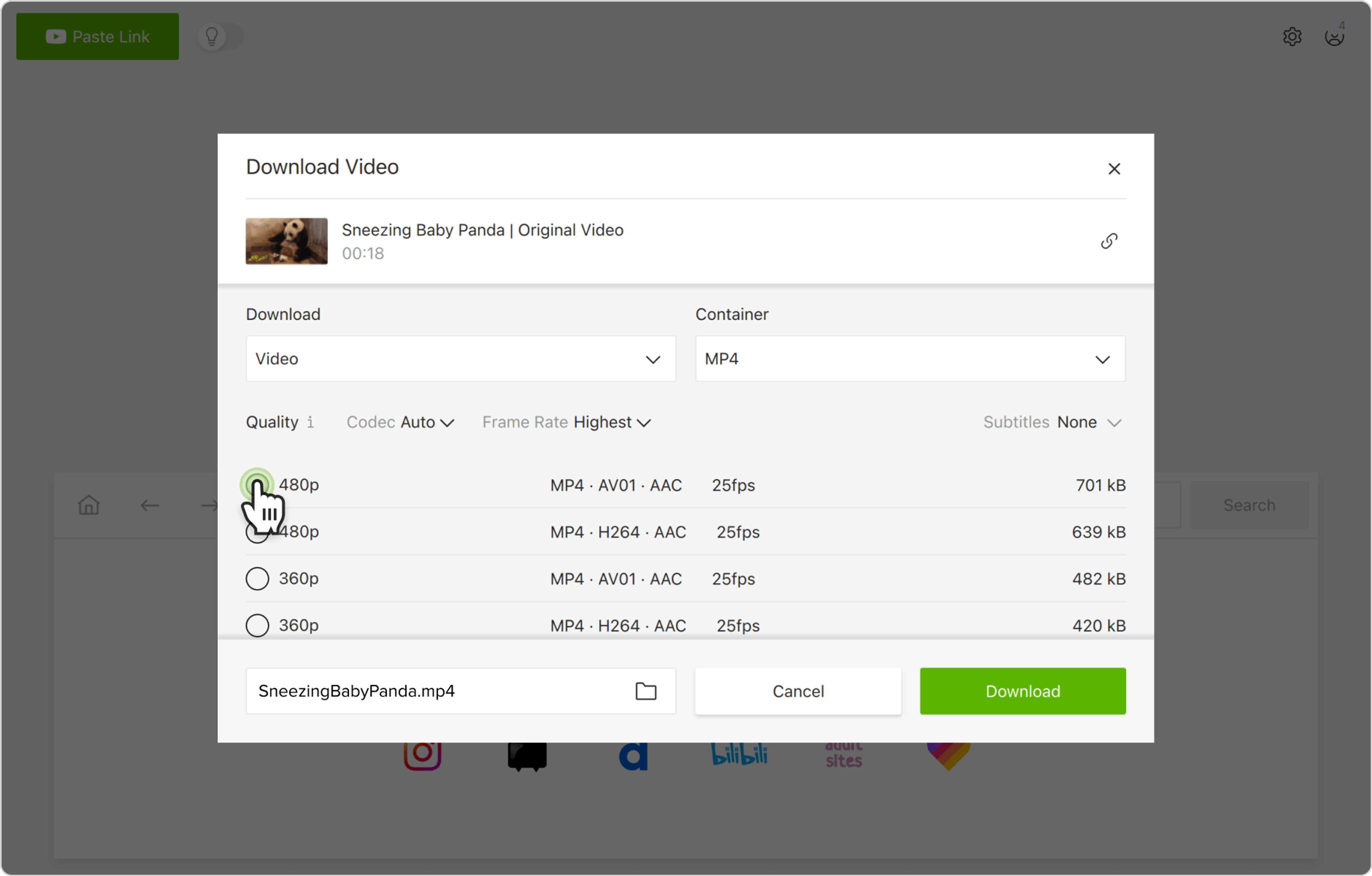3. Cliquez sur le bouton Coller le lien dans le téléchargeur.