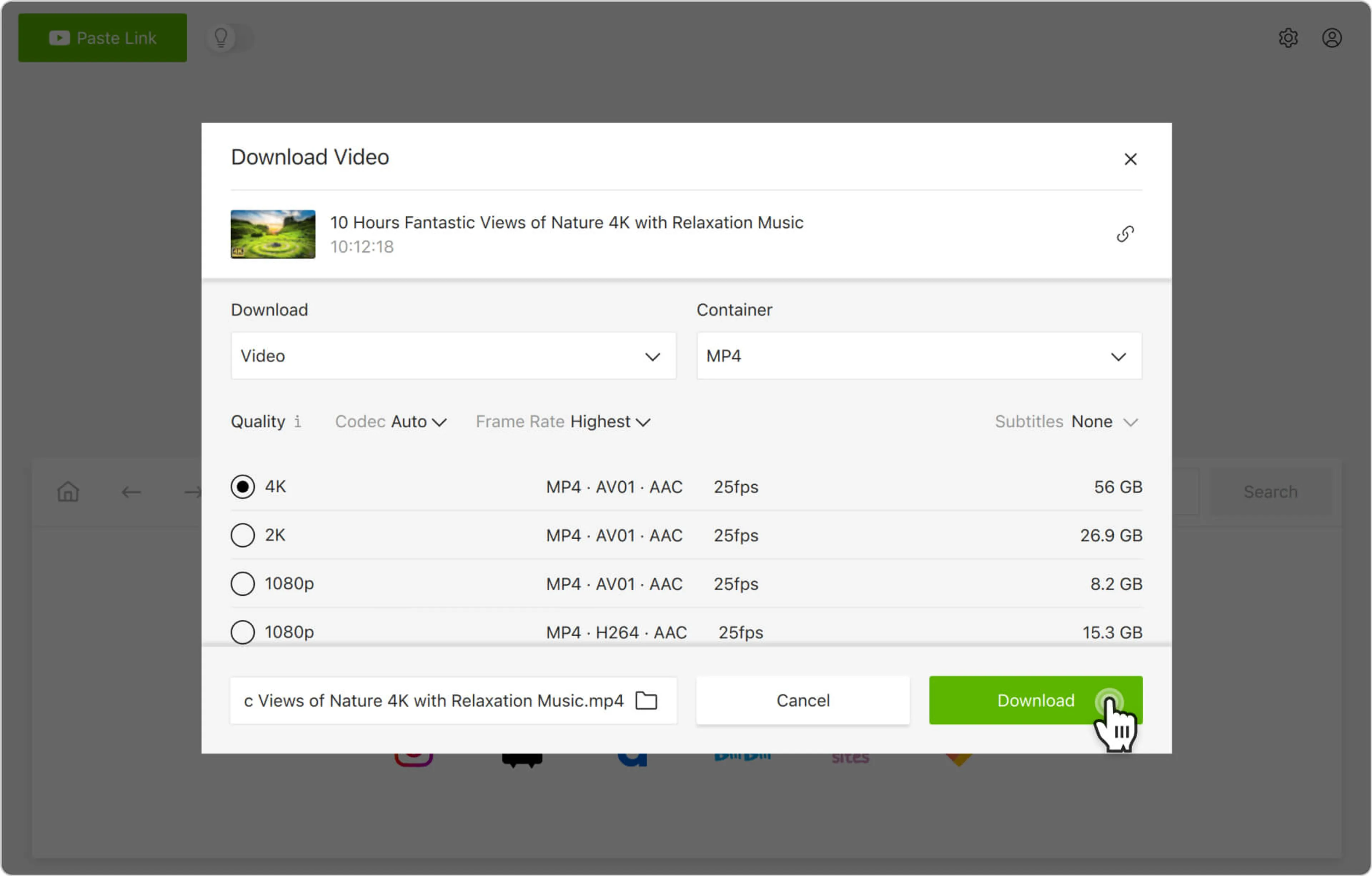 4. Sélectionnez les paramètres de téléchargement. Choisissez le format vidéo, la qualité et le dossier de destination sur votre ordinateur.