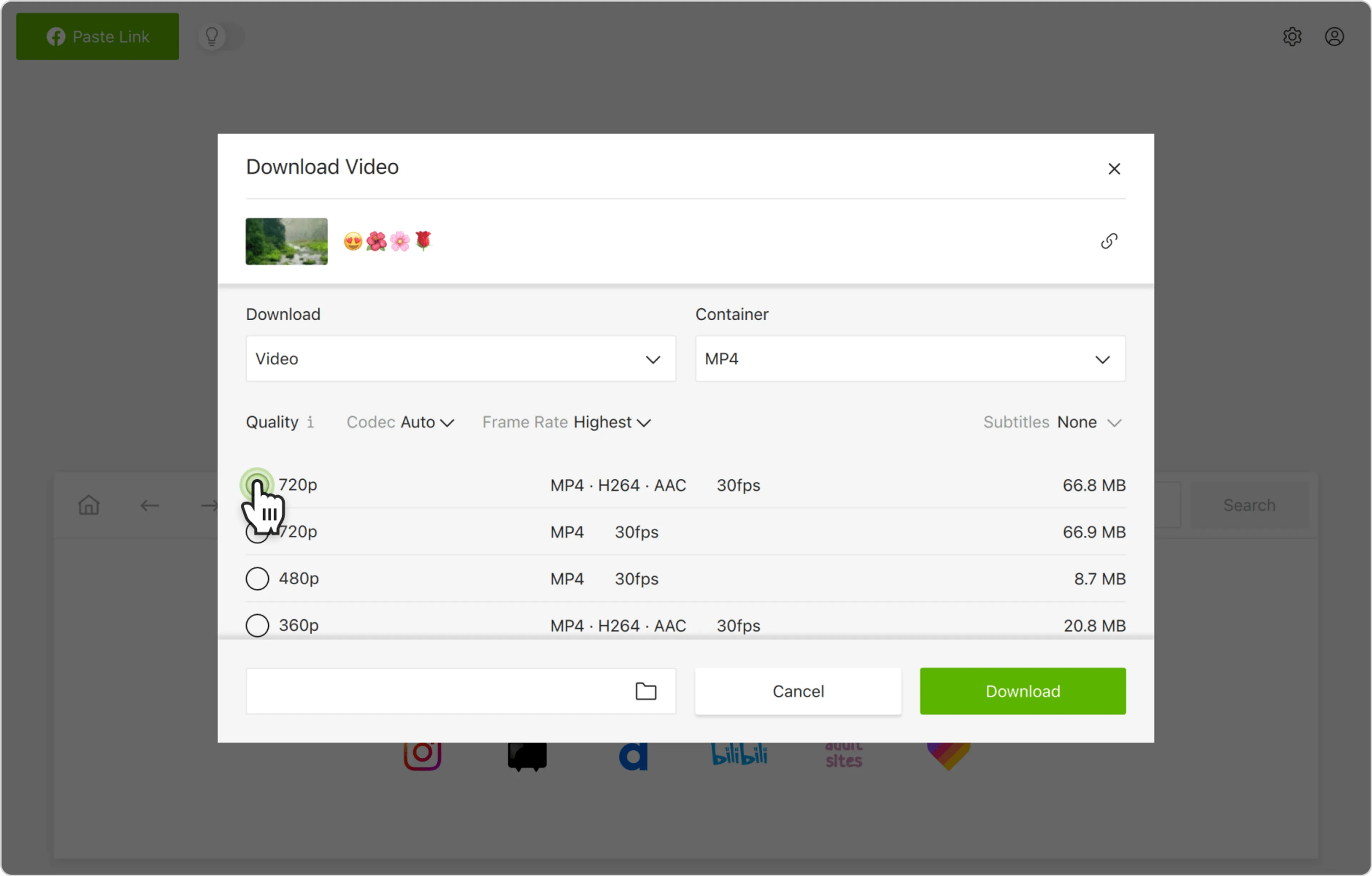 Facebook은 인기 있는 소셜 네트워크일 뿐만 아니라 세계에서 가장 큰 동영상 공유 사이트 중 하나입니다. 플랫폼은 호스팅된 콘텐츠를 다운로드하는 직접적인 방법을 제공하지 않지만 4K Video Downloader Plus를 사용하면 고품질의 무료 Facebook 비디오 클립을 저장할 수 있습니다. 아래 단계를 따르세요.