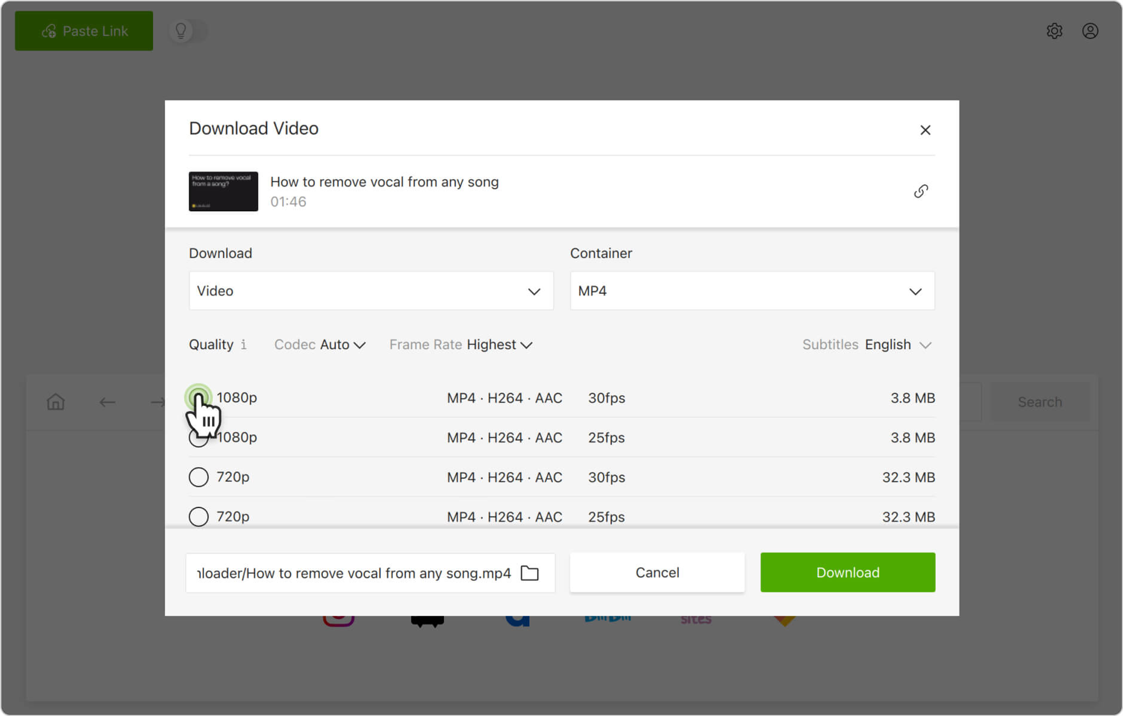 3. 다운로더의 링크 붙여넣기 버튼을 클릭합니다.