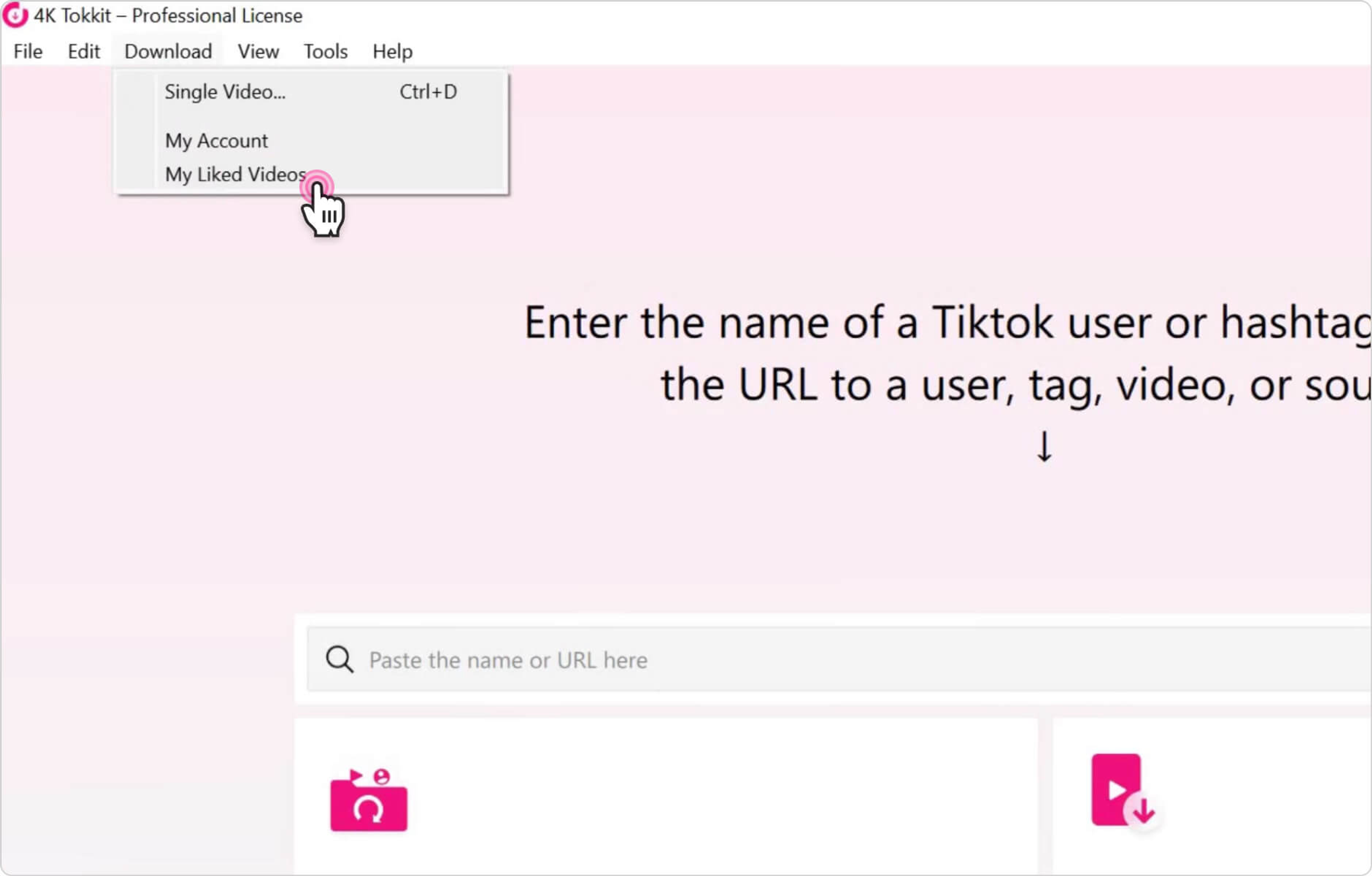 O TikTok é tão cheio de conteúdos envolventes de todos os tipos, que certamente fará você curtir pelo menos uma dúzia de clipes. Tudo que você curtiu na plataforma pode ser encontrado facilmente em uma aba dedicada de "Curtidos". No entanto, alguns vídeos podem ser banidos ou excluídos ao longo do tempo, e, como resultado, você poder perder o acesso a eles. Se você quiser garantir que esses vídeos estarão sempre disponíveis para você, a melhor forma de fazer isso é baixando-os. Com o 4K Tokkit, você pode salvar todos os seus vídeos do TikTok curtidos ou os de outro usuário que estejam publicamente disponíveis de uma só vez. Siga os passos abaixo para começar a baixar.