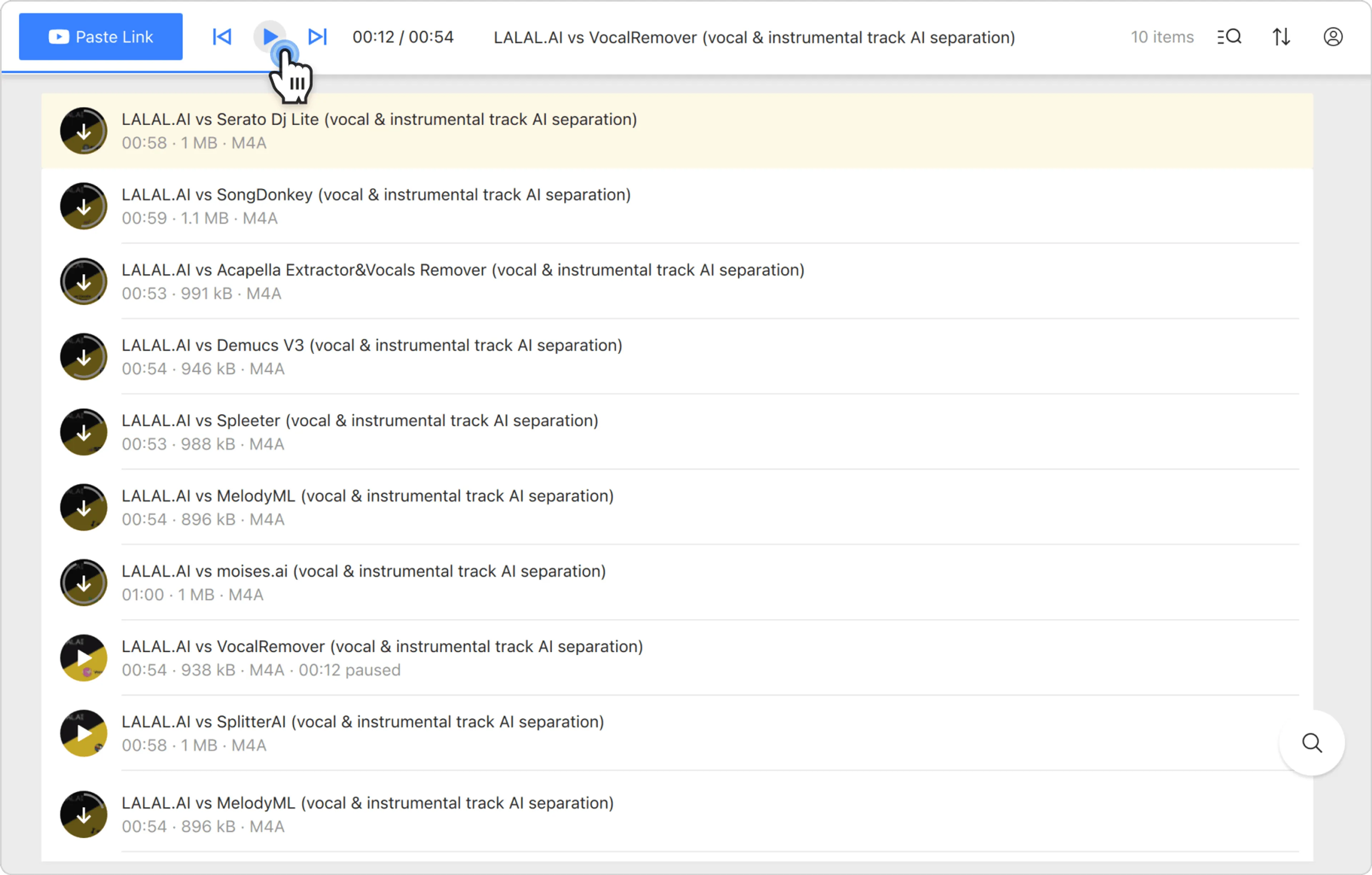 Quando o download estiver concluído, clique em ▶ na miniatura da música no aplicativo para começar a reproduzi-la.