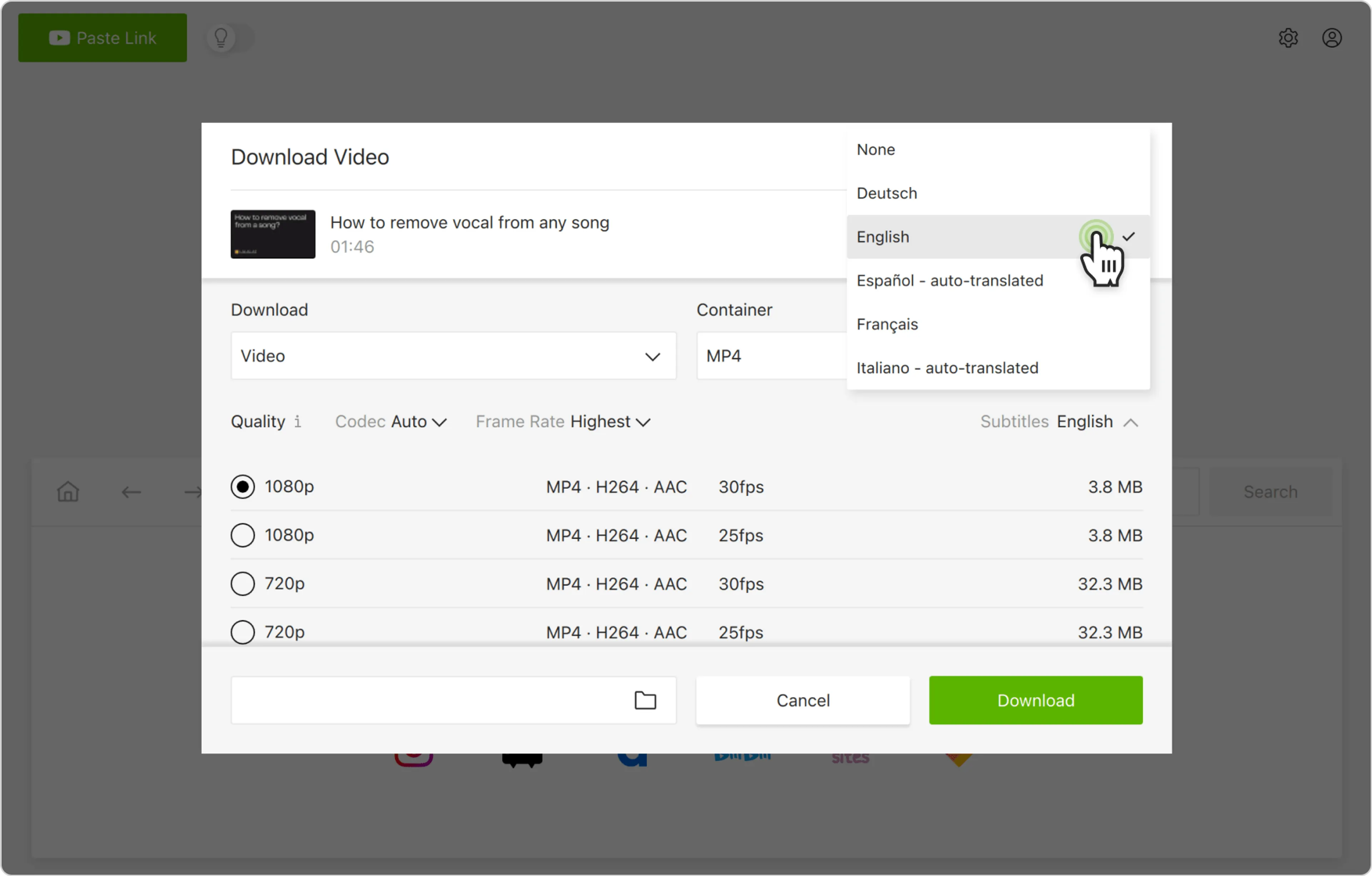 Многие видео на YouTube имеют субтитры на одном или нескольких языках. Субтитры упрощают просмотр видео на иностранных языках и понимание диалогов, несмотря на диалекты, акценты и речевые особенности. Если вы хотите скачать видео с субтитрами с YouTube, 4K Video Downloader Plus — именно то, что вам нужно. Следуйте простым шагам ниже, чтобы начать загрузку.