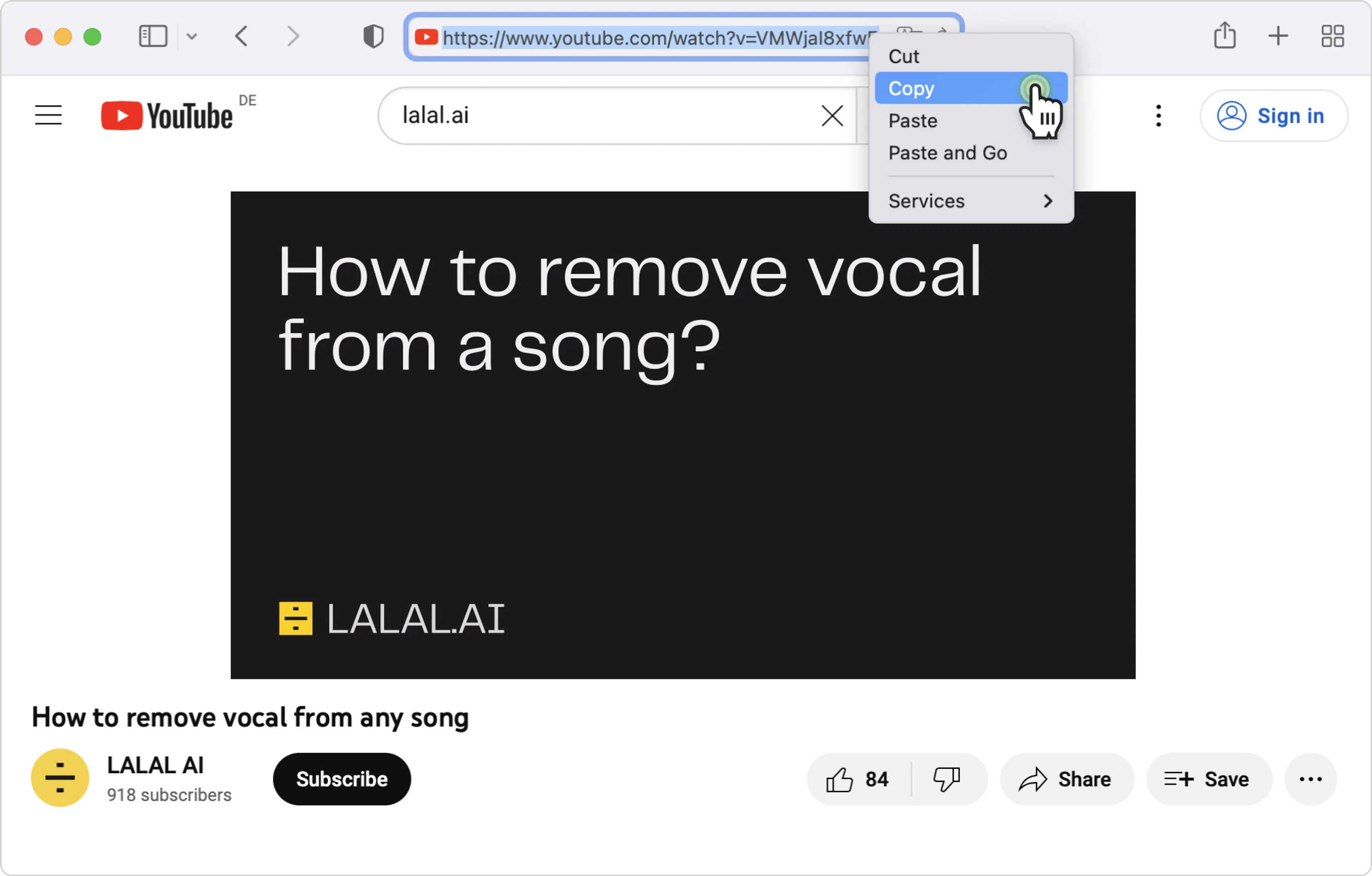 2. Скопируйте ссылку на YouTube-видео с субтитрами, которое вы хотите скачать.
